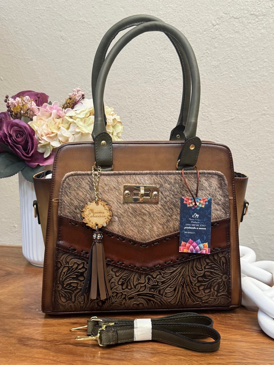 MAOMA GDE FANY FRANJA HORIZONTAL PELO Y GRABADO MARRON/CAMEL